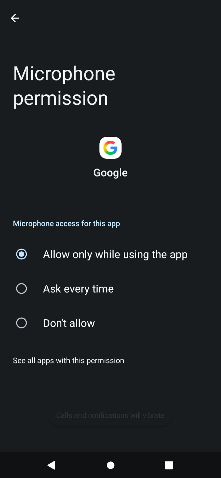6. Otevřete Oprávnění, klepněte na Mikrofon a zvolte Povolit pouze při používání aplikace.